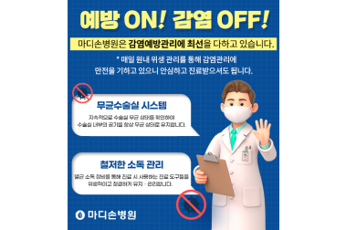 마디손병원은 감염으로부터 안전합니다.