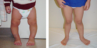 두세 돌 때에도 심한 "O"형 다리를 가진 경우 비정상인 경우도 간혹 있습니다. 그중 가장 흔한